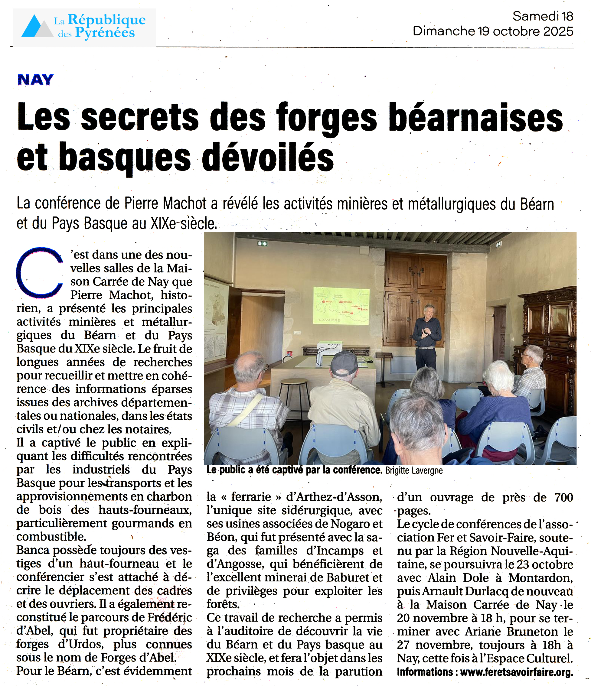 Dans le cadre du cycle de conférences organisées par Fer et Savoir-Faire, l’historien Pierre Machot a présenté les activités minières et métallurgiques du Béarn et du Pays Basque au XIXe siècle
